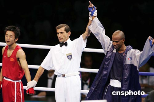 | 當(dāng)?shù)貢r(shí)間8月27日,中國(guó)選手鄒市明(左)在奧運(yùn)會(huì)拳擊男子48公斤級(jí)半決賽中,負(fù)于古巴強(qiáng)手揚(yáng)·巴特雷米,無(wú)緣決賽。由于奧運(yùn)會(huì)拳擊比賽不再進(jìn)行三四名的爭(zhēng)奪,因此鄒市明已經(jīng)獲得銅牌。這是中國(guó)拳手在奧運(yùn)會(huì)上歷史性的突破,中國(guó)拳手此前在奧運(yùn)會(huì)上從未進(jìn)入過(guò)前4名。中新社記者:毛建軍