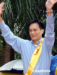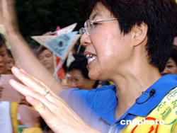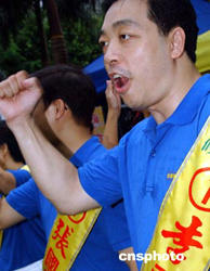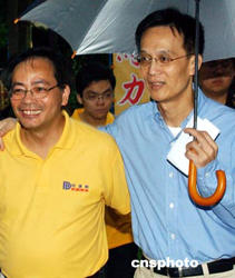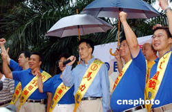 八月二十九日,香港民建聯舉行2004立法會選舉誓師大會,剛剛手術出院的民建聯主席馬力與港島區候選人一起在誓師大會上,為進軍2004立法會選舉造勢。作者:錢興強