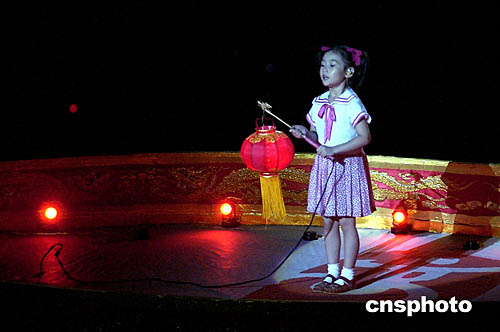 圖為在閉幕式現場,中國女孩向全世界的人們發出邀請,歡迎他們2008年到北京來的場面。