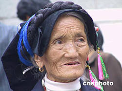 圖:藏族老人欣賞歌舞表演
