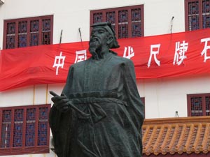 王羲之公元303年生于瑯琊(今山東省臨沂市),幼時在洗硯池畔苦練書法。他博采眾家,務精諸體,因創妍美流變的新體享譽中外,被后人尊稱為“書圣”。臨沂市現存有洗硯池、曬書臺等遺跡。去年,當地政府斥巨資對王羲之故居進行了整修、擴建。