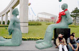 長春市舉辦的首屆“邀請展”,有來自一百三十個(gè)國家的三百四十一件雕塑作品在公園內(nèi)陳列展出。圖為印度雕塑家巴拉特展出的作品“至尊友誼”。