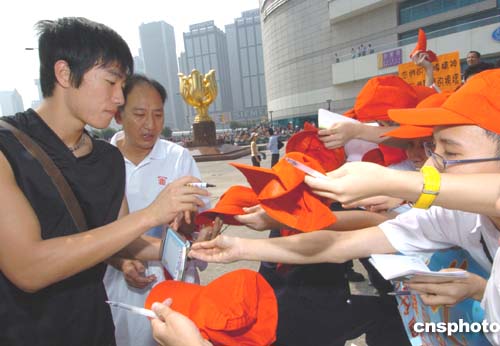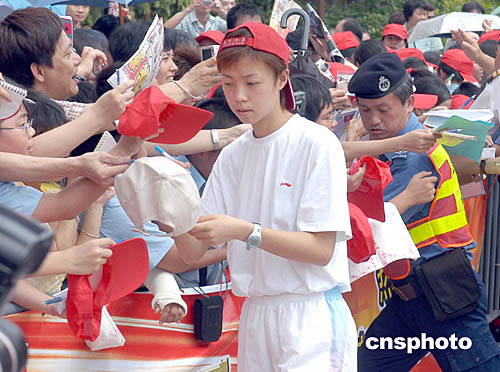 一名六年級(jí)小學(xué)生鄭同學(xué)表示,他一共取得了七名運(yùn)動(dòng)員簽名,其中最高興是可以取得田亮親筆簽名,亦可以近距離接觸他們,他覺得運(yùn)動(dòng)員很親切和友善,雖然排隊(duì)有點(diǎn)辛苦,但可以親眼目睹運(yùn)動(dòng)員,覺得很值得。