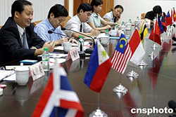 | 九月十日,廣西壯族自治區(qū)黨委常委、自治區(qū)副主席、中國(guó)·東盟博覽會(huì)組委會(huì)副主任兼秘書長(zhǎng)李金早(左一)向媒體介紹中國(guó)—東盟博覽會(huì)籌備工作情況。本屆博覽會(huì)共有室內(nèi)展位1763個(gè),截至八月三十日,博覽會(huì)秘書處共收到境內(nèi)外申請(qǐng)展位4261個(gè),國(guó)內(nèi)各省市報(bào)名申請(qǐng)展位2933個(gè),東盟及其他國(guó)家和地區(qū)的申請(qǐng)展位781個(gè)。二零零四年十一月三日至六日,中國(guó)—東盟博覽會(huì)和中國(guó)—東盟商務(wù)與投資峰會(huì)將在廣西南寧市隆重舉行。中新社記者:張勤