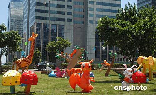 中秋將至,澳門街頭各處擺置了不少應(yīng)節(jié)花燈,喜迎中秋佳節(jié)。作者:梁永強(qiáng)