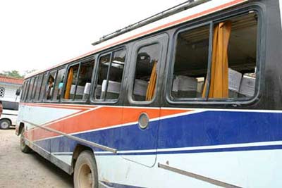 馬棚中取出棍棒 四輛客車瞬間遭砸