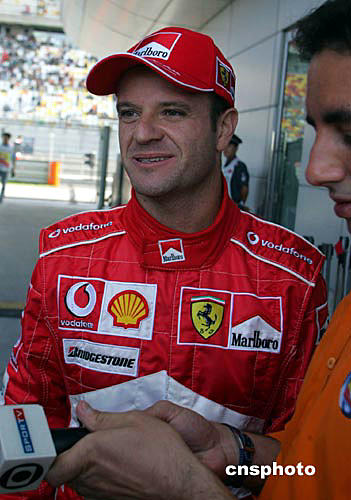 九月二十五日,F1中國大獎賽排位賽在上海國際賽場舉行,法拉利車手巴里切羅以一分三四秒取得桿位。車王舒馬赫在正式排位賽第一個彎道賽車滑出賽道,明天將在最后一位發車。作者:潘索菲