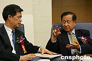 中國新聞社總編輯郭招金(左)出席中國競爭力論壇。中新社記者:高遠