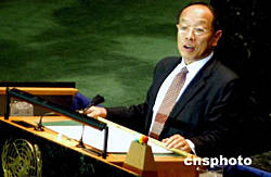 中新社聯合國九月二十七日電 (記者趙海燕)正在紐約聯合國總部參加第五十九屆聯大的中國外長李肇星二十七日在一般性辯論中發言強調,中國的發展不妨礙任何人,也不威脅任何人。