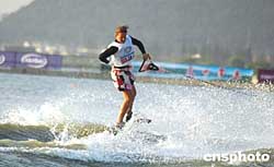 二○○四“明日星城”世界杯滑水賽九月三十日在江蘇常熟尚湖風景區拉開帷幕。來自十六個國家和地區的五十四名選手將三天內將角逐男女跳躍、男女回旋、男女花樣共六個單項的比賽。據悉,十月二日上午將進行各個單項的決賽。作者:蔣振江