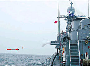 中新網10月1日電 據韓國《朝鮮日報》消息,韓國日前成功試射了一枚自行研發的反潛魚雷,據稱這種名為“藍鯊”的魚雷既可以以海上艦只為發射平臺,也可以選擇反潛飛機攜帶。