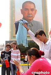 圖:天安門廣場孫中山像前排隊拍照