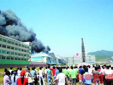 據員工稱,起火原因可能是當時因是新建廠房,裝修還沒完工,在工地旁邊又有一個正待回收的垃圾堆,很多易燃的物品就堆在廠房一側。昨天在廠房外還有電焊工操作,大火正是在廠房外燒起來的,估計是電焊時失的火,但具體原因待查。由于該廠房主要生產音響,廠房內堆了很多木殼、泡沫、塑料等物品,一著火便一發不可收拾,火勢得以迅速蔓延至整棟大樓。