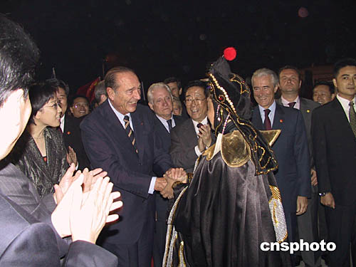 出行前自稱肩負“悠長的文化情緣”和“重要的經濟使命”的希拉克,此次率領了一個由政府官員和企業家代表等組成的300余人的龐大團隊,其中包括4位部長以及數十位文化、科技、企業界人士。