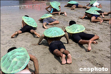 動物保護組織扮海龜在海灘爬行