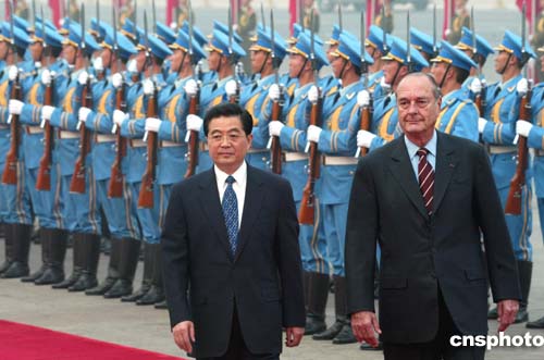 胡錦濤舉行儀式歡迎希拉克訪華