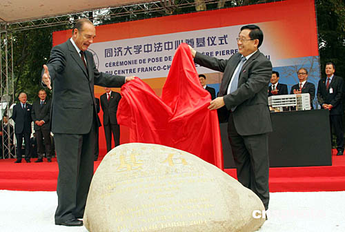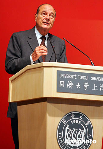 素有“中國情結”的法國總統希拉克今天一到上海就來到著名高等學府同濟大學,向全中國青年滿懷感情地表達來自法國的友誼與共同接受新世紀挑戰的美好愿望,并接受了中國學子寓意中法友誼長存的禮物。