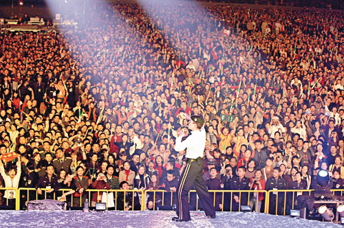 前晚在奧運中心體育場的演出全場爆滿,而場外也極之壯觀,于東南西北四個閘口,最少每一個閘擠了四、五千人;大會雖安排了七百名公安協助維持秩序,但公安也怕控制不到場面,為防場面失控,馬上急召武警,將場館重重圍著。由于場館內外有逾十萬人群離開,堵塞了場口,“華仔”也無法于個唱后離去,要安排公安車進入后臺位置來接;不過因人群太多,公安車也無法開動,花近大半個小時才能駛進場內接走“華仔”。而工作人員則于場內苦等近四個小時,才可以離開場館返回酒店。