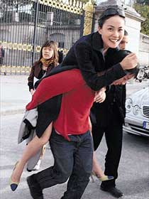 中新網10月16日電 冷若冰山的王菲,在巴黎街頭突一反常態,大庭廣眾下向設計師撒嬌,非要他背著她繞街跑一圈不可,兩度表現失常。