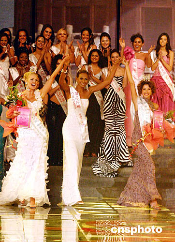第四十四屆“國際小姐”總決賽十月十六日晚在北京工人體育館落幕。希臘選手Olga Kypriotou榮獲“探花”,美國小姐Amy Holbrook獲亞軍。哥倫比亞小姐Jeymmy Paola Vargas獲得冠軍。作者:韓藝冰