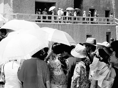 近年來,莫高窟面臨的旅游壓力空前巨大。從1979年正式向游人開放時起,每年來敦煌石窟旅游的人數迅速上升,今年估計將突破40萬人次。今年國慶“黃金周”期間,各地涌到敦煌、進莫高窟參觀的游客總數即超過2萬人次。許多開放洞窟和狹窄棧道,都是人滿為患。超量游客進入洞窟,使洞窟長期陷于“環境疲勞”狀態,導致體質逐漸惡化,并直接助長崖體及壁畫底仗中的氯化鈉聚積,催化莫高窟壁畫、塑像的已有病害。更有一些旅游者,還千方百計要觸摸這些古老珍寶。據統計,暗中“動手”者的比例高達3.9%。種種情況,構成了對莫高窟文物的極大危害。
