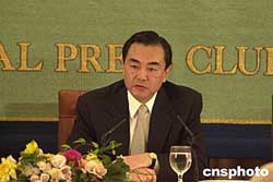 圖:王毅大使在日本俱樂部舉行記者招待會
