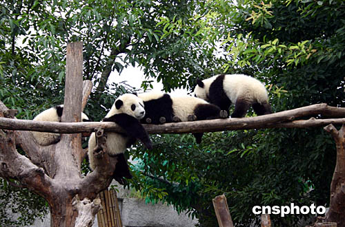 圖:憨態可掬的大熊貓幼仔玩耍嬉戲