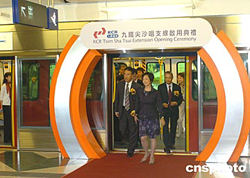 香港九廣鐵路24日在尖東站舉行尖沙咀支線啟用典禮﹐投資達41億元的尖沙咀支線下午3時正式投入使用﹐新支線將東鐵由紅磡站向南伸延至位于商業中心及購物區的尖東站。中新社記者:趙振清