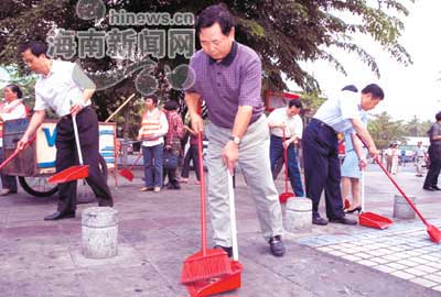 衛(wèi)留成對旁邊也正在清掃的海南省委副書記、海口市委書記王富玉說:“說實在的,我們掃大街,一年也就這么一回,而環(huán)衛(wèi)工人們每天都要起早貪黑地打掃,他們太辛苦了。”