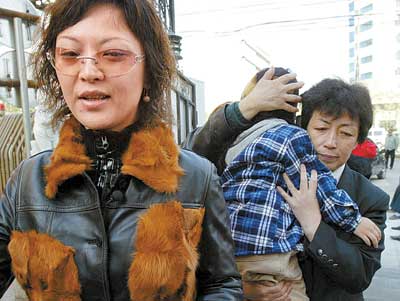 三歲的元元非常乖巧,在這樣混亂的場面中,沒有吭一聲,沒有害怕地呢喃或者叫“媽媽”。他靜靜地趴在法官的肩膀上一動不動。中年婦女顯得十分緊張,她甚至帶著哭腔說:“不要拍我們的孩子了!”看到這種情況,已有記者感嘆“可憐的孩子”。