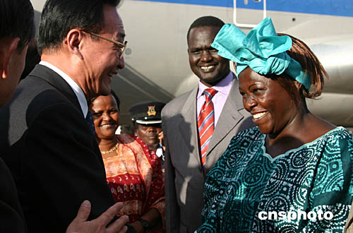 中新社內羅畢十月二十九日電(記者張量)當地時間二十九日下午,中國全國人大常委會委員長吳邦國抵達內羅畢國際機場,開始對肯尼亞為期四天的正式友好訪問。