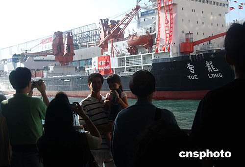 中國破冰船“雪龍號”抵達香港補給并停泊在尖沙咀海運碼頭,這艘唯一能在極地航行的破冰船,冀三日的訪港活動,擴闊港人視野。“雪龍號”將啟程往南極挑戰南極的最高點,這將是中國人首次深入南極內陸一千三百公里,創造中國南極考察史新紀錄。圖為10月30日大批香港市民前來圍觀“雪龍號”破冰船。作者:尚金生