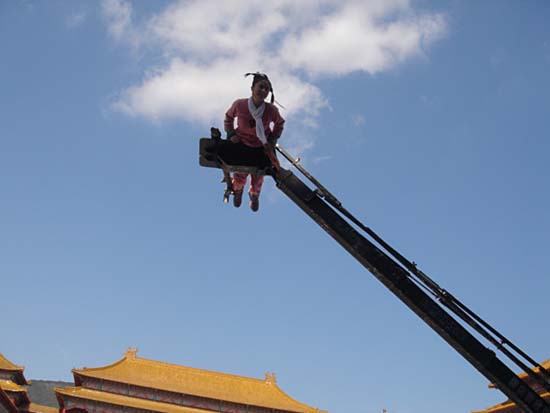 據了解,何美鈿的戲份原本已經全部拍完,她也離開了橫店拍攝基地,轉而去上海拍攝一部電影,但前天她接到李力持導演的電話,希望她能再回去補一天的戲,敬業的何美鈿就同意了,誰知卻發生了這樣的意外。何美鈿的經紀人昨日下午在接受采訪時告訴記者,美鈿還在醫院進行治療,“那場戲原本可以用替身的,但美鈿實在太認真了,非要親自上場,早知道會這樣,說什么我也要攔著她!蹦菆鰬蚶铮蚊棱氾椦莸拿厶亲兤亮,要做一個“鯉魚躍龍門”的動作,這對沒有武術功底的演員來說難度挺大。工作人員把何美鈿綁在攝影用的搖臂上面,然后升到高空。“她還興高采烈地跟大家揮手。”何美鈿的經紀人回憶起當時的情景心痛不已,“然后搖臂下降時重重地砸在地上,美鈿的臉色立即就不對了,手扶著腰,眼淚直在眼眶里打轉,所有人都趕緊沖上去看,七手八腳把她從搖臂上扶起來,但她站不起來……隨后劇組立即用車把她送往醫院。但是橫店的醫療條件實在太差了,醫生初步診斷是肋骨挫傷,并且傷及脊椎,尤其是腰部,建議我們轉往義烏或者上海的大醫院!