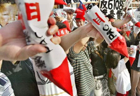 中新網11月2日電 據臺灣媒體報道,臺“立法院程序委員會”今天再度開會討論6108億軍購草案是否能夠付委,島內的“反6108軍購大聯盟”持續在“立法院”前靜坐抗議,出席成員以手捏扁自制的愛國者三型導彈道具,并反手將彈頭朝下表達反對軍購案。