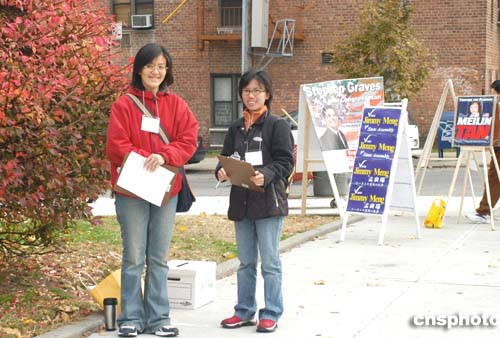 今年美國大選競爭激烈,競選團隊也毫不松勁。美東時間十一月二日大選日清晨,紐約市亞裔移民聚居區法拉盛的投票站外,助選人員照常“站崗”,企圖在最后時刻“拉攏”選民投票給自己助選的一方。作者:龔文謨