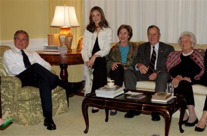 圖:布什總統在白宮中與家人一起靜待選舉結果