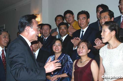 十一月五日正在贊比亞首都盧薩卡訪問的全國人大常委會委員長吳邦國看望了當地華人華僑、使館和中資企業工作人員。吳邦國在詢問中國農墾總公司員工李莉有關情況后高興地表示,農業在贊比亞大有可為。作者:張量