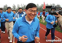 著名華商、中芯國際總裁張汝京參加上海中芯國際學校舉行的“親子運動會”。該校目前有來自世界十八個國家和地區的五百多學生就讀,其中臺商子女占百分之六十以上。