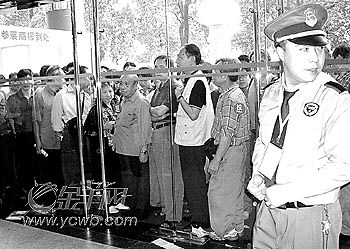 被拒進(jìn)場后,大部分觀眾雖然十分失望,但仍在廣場附近徘徊,久久不愿離去。一些年輕氣盛的觀眾則對此表示強(qiáng)烈憤慨。一名中年男子高聲質(zhì)問保安員:“我們都是看了報(bào)紙?zhí)匾廒s過來的,你們在宣傳時(shí)只說是到8日結(jié)束,沒說明到中午就閉館,這不是折騰人嘛,白白浪費(fèi)了我們的時(shí)間和心機(jī),你們要給精神賠償!”