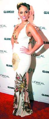 一臉稚氣的艾莉西婭·凱斯當晚也欣然赴會,V字領的白底禮服,倒也顯得她有了幾成熟嫵媚的氣質,不過衣服上雜亂的圖案,和不太搭調的色彩,也令整體感覺打了折,出席這種較嚴肅的頒獎禮,就沒有溫斯萊特搭配得出彩。她的入選理由看起來就簡單直白了許多,年紀輕輕已經是5屆“葛萊美”的大贏家,取得了同齡人難以企及的成就。另外,昨晚的頒獎更象是一個明星的大聚會,不少大腕也盛裝出席:影帝湯姆·漢克斯攜妻子早早來到會場,與眾人愉快地交流;皮爾斯·布魯斯南夫婦也到場助興;還有尼古拉斯·凱奇和他的新婚韓裔嬌妻,會場上一時間滿眼的俊男靚女。