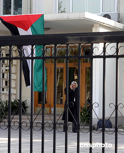 圖:巴勒斯坦駐華使館降半旗向阿拉法特致哀