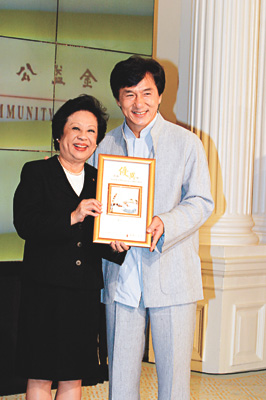 這次的頒獎嘉賓由特首夫人董趙洪娉擔(dān)任,當(dāng)輪到成龍領(lǐng)獎時,他卻正去洗手間,但仍趕得及上臺領(lǐng)獎。事后記者問他是否太緊張?他笑謂,每日都會飲三樽水,而他又不知道要頒幾個獎,所以才會上廁所。去年,成龍以個人名義捐了五十萬給公益金,獲得公益優(yōu)異獎,除了捐款外,他還身體力行去幫助有需要的人士。他計劃完成《驚天傳奇》的拍攝工作后,到新疆進行探訪。