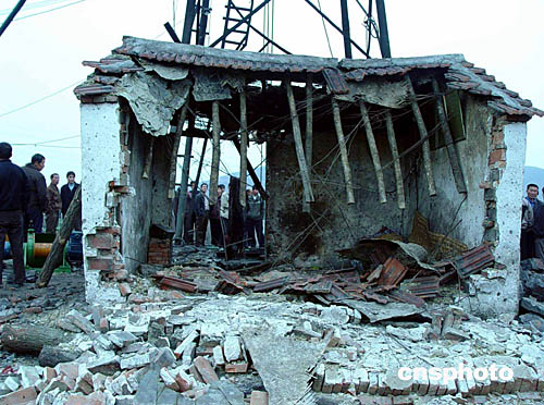 圖為十一日瓦斯爆炸現場被震毀的房屋。