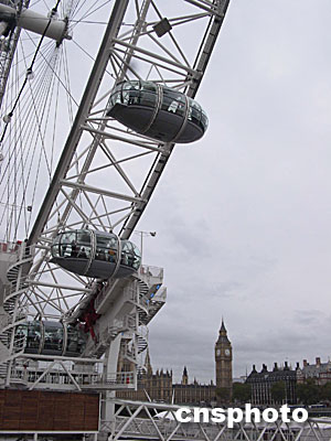 高135米的摩天大轉盤“倫敦眼”,是目前世界最大的摩天輪。這座千禧年在倫敦泰晤士河畔矗立起來的目前世界最大摩天輪,每半個小時旋轉一周。游客可乘坐它在城市中心的上空,俯瞰方圓25英里范圍內的倫敦美景。余瑞冬攝