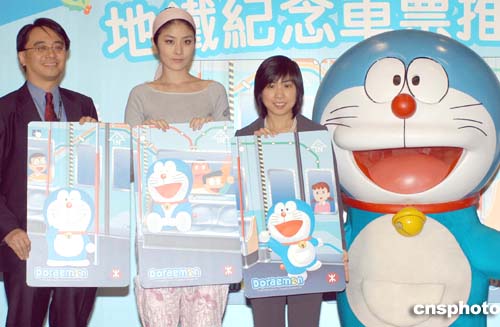 歌星陳慧琳11月17日在香港出席地鐵公司《多啦A夢地鐵紀念車票推廣儀式》,陳慧琳與漫畫明星“多啦A夢”及地鐵公司高層共同展示快將推出的一套紀念車票。作者:鄧慶樂