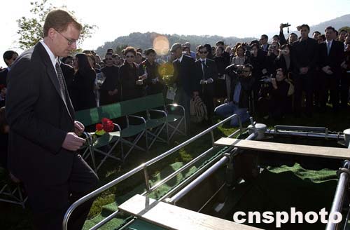 今天的安葬儀式有三百余人出席,中國駐舊金山副總領(lǐng)事邱學軍專程前往參加并宣讀了彭克玉總領(lǐng)事的唁電,向張純?nèi)绲挠H人表示慰問。彭克玉說,雖未與張純?nèi)缰\面,但早已得知她的作品和事跡。她以正義、勇敢、執(zhí)著、求實的精神揭露了侵華日軍在中國的暴行,還歷史以真實,讓世界了解了南京大屠殺的真相。彭克玉還贊揚張純?nèi)鐬槿A裔的權(quán)益、為增進美國人民對華裔的了解作出了貢獻,是人們永遠懷念和尊敬的偉大女性。張純?nèi)鐑簳r的伙伴、大學的好友等也分別回憶了往日與張純?nèi)绲某ο嗵帯?object align="left" classid="clsid:D27CDB6E-AE6D-11cf-96B8-444553540000" codebase="http:///pub/shockwave/cabs/flash/swflash.cab#version=5,0,0,0" height="240" width="320">