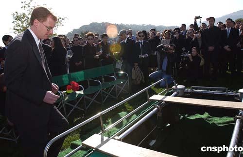 當(dāng)?shù)貢r(shí)間十一月十九日,美華裔女作家張純?nèi)绨苍嵩诩又萋逅拱⑼兴故械摹疤焯弥T”墓園。她的丈夫、父母、弟弟以及眾多仰慕者一起為她送行。作者:陳鋼