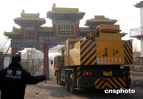 11月22日上午,緊急從包頭鋼鐵公司調(diào)來的重型吊車抵達空難事故地點——包頭南海公園,協(xié)助打撈11.21空難失事客機的殘骸。中新社記者:張宇