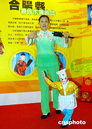 在24日的“陜西--香港經(jīng)貿(mào)合作周”現(xiàn)場(chǎng),陜西獨(dú)有的古老地方劇種----合陽(yáng)提線木偶戲愛(ài)到參觀者青睞。作者:譚達(dá)明