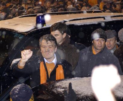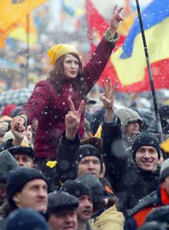 中新網11月25日電 綜合外電報道,烏克蘭中央選舉委員會24日宣布,現任總理亞努科維奇在第二輪總統選舉中以近3個百分點的優勢當選新總統。烏克蘭國防部長庫茲穆克當天也表示,不會因總統選舉導致的政治動蕩而調用軍隊。但是,以尤申科為首的烏克蘭反對派“人民力量”聯盟拒絕接受大選結果,并于當天在基輔獨立廣場上宣布成立國家救亡委員會并舉行全國政治罷工。一場政治風暴似乎將在烏克蘭一觸即發。